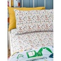 Catherine Lansfield Digger Dreams Junior Fitted Sheet Construct a cosy sleep space and build dreams of awesome adventures with Catherine Lansfield’s Digger Dreams junior fitted sheet. It’s a perfect partner to the coordinating duvet cover set, available separately (see item number WESHD), featuring lots of tools, including hammers, wrenches, nuts and bolts, all set against a classic white backdrop. This sheet has been designed specifically with junior beds in mind, so it’s slightly sma...