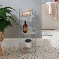 Designed to be freestanding, this chrome bathroom caddy features three spacious shelves great for storing your toiletries and bathroom products in an easy to reach place. - Manufacturers part number: 30443296