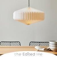 **The Edited Life - Origami Hexagon Paper Pendant**Versatile and familiar, the tactile qualities of paper make it a great addition to stylish, grounded homes. Easy Fit pendants are ideal for a quick style change without needing an electrician. Simply assemble on to your existing ceiling fitting, and youre good to go within minutes! Dont forget to choose the correct bulb for your ceiling fitting.**Live well. Mean well. Be well.**Many of us want to live simpler, more responsible lives. As we become more a... - Manufacturers part number: 30713917