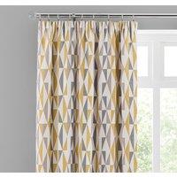 Featuring a stylish triangle design, these Elements curtains offer a versatile ochre colourway that will suit different decor styles. Designed with a pencil pleat header for fabulous folds and a full drop and are sold in a variety of widths and drops. Fully lined and boasting a luxuriously soft chenille fabric, these curtains will offer privacy and warmth and also offer a coordinating filled cushion sold separately to complete the look.Please note: These curtains are sold as a pair.