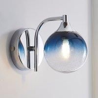 Boasting a modern elegant design, the Torbay wall light is perfect for giving any bathroom a new stylish look. This stunning wall light is IP44 rated and features a delicate round pitted glass shade, complete with a beautiful blue ombre design and paired perfectly with a stylish chrome base to create a bold, modern statement look. - Manufacturers part number: 30730516