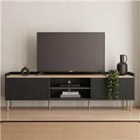Dunelm Exclusive - Designed and Developed by Dunelm* Ribbed detail design* Painted finish with light oak effect top and trim* Matte gold finish handles and legs* 2 storage cupboards* Twin open shelves* Cable openings* Full assembly required Equally glam and modern, our Georgi Extra Wide TV Unit draws the eye with its striking textured front set against a stylishly simple frame. This TV unit is finished with matte gold finish handles and legs for a truly contemporary luxe look and has cable openings in t... - Manufacturers part number: 30769272