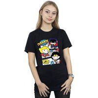 100% ringspun cotton. Fabric: midweight. Design: printed. Neckline: crew neck, lycra ribbed. Sleeve-type: short-sleeved. Branded neck label, single needle stitching, supersoft. 100% officially licensed. Fit: boyfriend. 153gsm. Packaging: swing tag. | Dc Comics Chibi Super Friends Dance Cotton Boyfriend T-Shirt In Black - Manufacturers part numbers: BILCHB00001-WOM-BOYFT-BLK-S|DC Comics_5057736362709