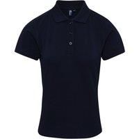Benefiting from CoolPlus wicking fabric properties for extreme breathability and moisture management. A double pique knit for comfort and appearance. Snag resistant, crease resistant, excellent wash performance with exceptional colour fastness. Side panels for a semi fitted shape. Three button placket with ribbed knit collar and arm cuff. Twin-needle stitching to the hem. Materials: 100% Polyester. | Premier Women's Coolchecker Plus Piqu Polo With CoolPlus in Navy | Size: Medium