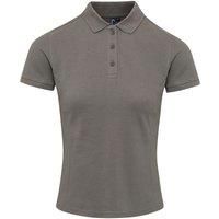 Benefiting from CoolPlus wicking fabric properties for extreme breathability and moisture management. A double pique knit for comfort and appearance. Snag resistant, crease resistant, excellent wash performance with exceptional colour fastness. Side panels for a semi fitted shape. Three button placket with ribbed knit collar and arm cuff. Twin-needle stitching to the hem. Materials: 100% Polyester. | Premier Women's Coolchecker Plus Piqu Polo With CoolPlus in Dark Grey | Size: 2XL
