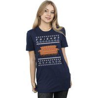 100% Ringspun Cotton. Fabric: Midweight. Design: Printed. Neckline: Crew Neck, Lycra Ribbed. Sleeve-Type: Short-Sleeved. Branded Neck Label, Single Needle Stitching, Supersoft. 100% Officially Licensed. Fit: Boyfriend. 153gsm. Packaging: Swing Tag. | Friends Fair Isle Couch Cotton Boyfriend T-Shirt In Navy - Manufacturers part numbers: BILFRN00040-WOM-BOYFT-NVY-XL|Friends_5057981452651