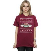 100% Ringspun Cotton. Fabric: Midweight. Design: Printed. Neckline: Crew Neck, Lycra Ribbed. Sleeve-Type: Short-Sleeved. Branded Neck Label, Single Needle Stitching, Supersoft. 100% Officially Licensed. Fit: Boyfriend. 153gsm. Packaging: Swing Tag. | Friends Fair Isle Central Perk Cotton Boyfriend T-Shirt In Burgundy - Manufacturers part number: Friends_5057981461035