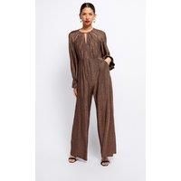 Dazzle in our Brown Metallic Jumpsuit. This stunning piece features a rich brown hue with a shimmering metallic finish, perfect for making a statement. The sleek, figure-flattering design and wide-leg silhouette offer both style and comfort. Ideal for parties and special events, this jumpsuit ensures you shine bright all night long. - Manufacturers part number: Little Mistress_5057990450006