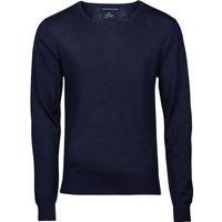A 14 gauge, tailored fit jumper with set in sleeves and a ribbed v-neck, cuffs and hem. Sizes (chest to fit): S (36/38in), M (38/40in), L (41/42in), XL (43/44in), XXL (45/47in), 3XL (47/49in). Materials: 50% merino wool, 50% acrylic. | TEE JAYS Men's Merino Blend V Neck Jumper in Navy | Size: 3XL