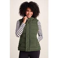 The Wyness hooded gilet provides warmth and freedom of movement, ideal for active days. Its snug fit keeps your core warm, while flattering princess seams contour your silhouette without bulk. The water-repellent coating offers protection against light rain, and the adjustable hood adds extra coverage. Features include a secure zip front, press studs, velcro, and two zip pockets for belongings or warming hands. With subtle TOG24 embroidery, it's perfect for any outing. | TOG24 Women's 'Wyness' Padded Gilet in Dark Green | Size: 20