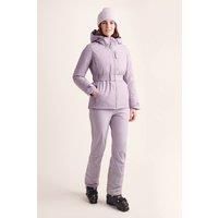 Conquer snow-covered mountains in style with the Meribel women's ski jacket. It features 20K waterproofing and breathability for comfort in any weather. The flattering hourglass design has a removable waist belt for versatile looks. A warm quilted lining and DWR coating keep you dry, while the fixed hood and waterproof zip enhance functionality. With ample storage, snow cuffs, and a grippy snow skirt, the Meribel jacket combines premium performance with striking style. | TOG24 Women's 'Meribel' Ski Jacket in Lavender | Size: 18 - Manufacturers part number: TOG24_5059011411751