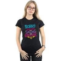 100% ringspun cotton. Fabric: midweight. Design: printed. Neckline: crew neck. Sleeve-type: short-sleeved. Branded neck label, supersoft. 100% officially licensed. 153gsm. Packaging: swing tag. | Marvel Women's Captain Saving The Universe Cotton T-Shirt in Black | Size: Medium - Manufacturers part number: Marvel_5059114207053