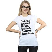 100% Ringspun Cotton. Fabric: Midweight. Design: Printed. Neckline: Crew Neck. Sleeve-Type: Short-Sleeved. Branded Neck Label, Supersoft. 100% Officially Licensed. 153gsm. Packaging: Swing Tag. | Friends Surnames Text Cotton T-Shirt In White - Manufacturers part numbers: Friends_5059114931811|BILFRN00084-WOM-TEE-WHT-XXL