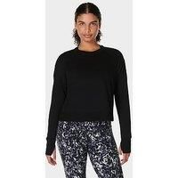 Sweaty Betty Womens Training After Class Sweatshirt - Black Size & Fit True to size - order your usual size Cropped Available in sizes XS - 2XL Details Womens Training After Class Sweatshirt by Sweaty Betty Black Plain Training top High crew neck Long sleeves with thumbholes Side split Material & Care Material Content: 50% Cotton, 50% Modal Washing Instructions: Machine Washable - Manufacturers part number: WDIKZ