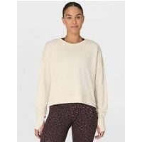 Sweaty Betty Womens Training After Class Crop Sweatshirt Size & Fit True to size - order your usual size Relaxed fit Front length: 61cm / 24" Available in sizes XS - 2XL Details End Use: Training Womens Training After Class Crop Sweatshirt by Sweaty Betty Beige Breathable blend of cotton and stretchy modal Crew neckline with V-stitching detail Dropped shoulder design Long sleeves with thumbholes ribbed cuff Side splits at the hem Material & Care Material Content: 50% Organic Cotton, 50% Modal