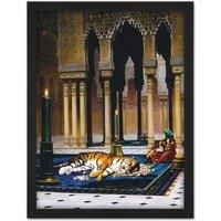 Artery8 Wall Art Print Gerome Grief Of The Pasha Mourning Tiger Painting Large Framed Wall Dcor Art in Light Oak | Size: W18" x H24"