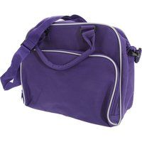 Pack of 2. Retro styling. Can be carried by hand or over the shoulder. Detachable adjustable shoulder strap. Zippered main compartment. Zippered front pocket. Internal mesh pocket. Internal baseboard. Dimensions: 39 x 29 x 16 cm. Max embroidery: 15 tubular hoop. Max print area: 30 x 15 cm. Capacity: 15 litres. Weight: Product: 520g. 600D Polyester. - Manufacturers part number: Bagbase_UTBC4343_purplelightgrey_MP-7813
