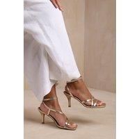 Where's That From Women's 'Austin' Multi Strap Cross Over Mid Heels in Metallic Gold | Size: 5