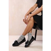 Stay effortlessly stylish and comfortable with our Giselle extra wide fit Flat Ballet Slider With Bow. These slip-on loafers are the perfect addition to your wardrobe, offering both versatility and elegance. Crafted with a cushioned insole for all-day comfort and a rubber outsole for added traction, these slip-on daily shoes will be your go-to for both casual and formal occasions.Key Features: Chic Design: The black faux patent leather material gives these sliders a sophisticated look that will elevate ... - Manufacturers part number: Where's That From_5059283420550