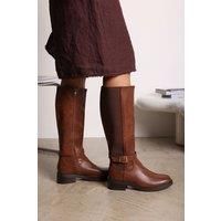 Make a bold style statement with our Oriana Knee High Riding Boots With Side Buckle Strap. Designed with a timeless riding silhouette, these boots bring together elegance and practicality. Crafted in smooth faux leather with low block heel, theyre perfect for all-day wear. The side buckle strap detail adds a polished touch, while the full-length inner zip ensures easy on-and-off convenience. A versatile style that pairs effortlessly with jeans, skirts, or dresses. Key Features: Material: Smooth faux lea...
