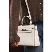 Elevate your everyday ensemble with this Lluvia Top Handle Satchel Mini Tote Bag, a timeless choice for modern elegance. Featuring a structured silhouette and refined grain-textured finish, this handbag blends style and practicality effortlessly. The polished gold-tone turn-lock closure adds a touch of sophistication. Ideal for work or weekend outings, its compact yet roomy enough for your essentials. Key Features: Material: Textured faux leather with contrast stitching Dimensions: 25cm (L) x 20cm (H) x 11cm (W) Fastening: Gold-tone turn-lock flap closure Detail: Minimalist top handle design with structured base and sleek finish | Where's That From Women's 'Lluvia' Top Handle Satchel Mini Tote Bag with Turn-Lock Closure in Cream