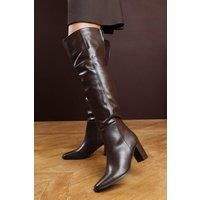 Make a bold fashion statement with the Lorraine Over The Knee Heeled Boots, combining timeless sophistication with modern allure. Crafted from smooth faux leather, these boots feature an elegant over-the-knee design with a stylish fold-over cuff. The mid-height block heel offers both comfort and elevation, making them perfect for transitioning from day to night with ease. Key Features: Material: Premium faux leather upper with soft lining Design: Over-the-knee silhouette with a chic fold-over cuff detail Heel: Comfortable block heel for effortless wear Closure: Side zip fastening for easy on and off | Where's That From Women's 'Lorraine' Over the Knee Heeled Boots Faux Leather in Dark Brown | Size: 3
