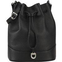 A modern take on a classic shape, this Dents bucket bag is crafted from supple pebbled leather. Its spacious, unstructured silhouette features a drawstring closure with silver-tone detailing and an inner zip pocket for added security. The adjustable crossbody strap adds hands-free convenience, making it an effortless everyday choice with timeless style. D:14.5cm W:24.5cm H:29.5cm | Dents Women's Somerset Leather Cross Body Bag in Black