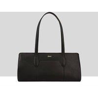 This elegant grainy leather shoulder bag boasts a sophisticated horizontal design with two generously-sized compartments flanking a central zipped section, all seamlessly secured by magnetic closures. Its practicality is further enhanced by a convenient front slip pocket, offering easy access to essentials while maintaining a sleek and timeless aesthetic. | Paul Costelloe Women's Flint Tote/Shoulder Bags Bag in Black