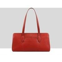 This elegant grainy leather shoulder bag boasts a sophisticated horizontal design with two generously-sized compartments flanking a central zipped section, all seamlessly secured by magnetic closures. Its practicality is further enhanced by a convenient front slip pocket, offering easy access to essentials while maintaining a sleek and timeless aesthetic. | Paul Costelloe Women's Flint Tote/Shoulder Bags Bag in Red