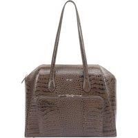 This stylish leather handbag, crafted from classic croc-embossed leather, boasts a unique boxed shape that maximizes space for everyday essentials. It features a convenient double-zip front pocket and a spacious interior with internal zip and slip pockets on either side, keeping everything organized and easily accessible. Perfect for daily use, this bag combines functionality with a chic, timeless look. | Paul Costelloe Women's Shingo Leather Shoulder Bag in Brown