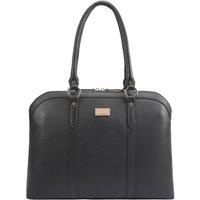 A sleek leather work bag crafted from smooth grain premium leather, designed with a clean profile and accented by a refined brand logo plate on the front. It features a padded laptop sleeve, internal slip and zip pockets for effortless organization, and a convenient zipped pocket at the back. Longer grab handles and a double zip puller ensure easy access, making it a smart choice for daily commute or business travel. D:9cm W:41cm H:31cm | Paul Costelloe Women's Fonissa Leather Shoulder Bag in Black