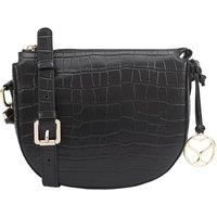 Chic and versatile, the Fairfax bag is crafted from sleek croc print leather with gold-tone hardware for a touch of sophistication. Its structured saddle shape and adjustable strap make it perfect for both day and evening wear. Featuring a secure zip closure and interior pocket, the Fairfax blends practicality with polished style an effortless statement piece for any occasion. D:6cm W:24cm H:19cm | SOSANDAR Women's Fairfax Leather Cross Body Bag in Black