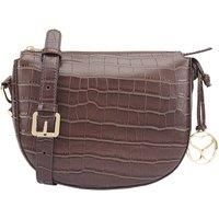Chic and versatile, the Fairfax bag is crafted from sleek croc print leather with gold-tone hardware for a touch of sophistication. Its structured saddle shape and adjustable strap make it perfect for both day and evening wear. Featuring a secure zip closure and interior pocket, the Fairfax blends practicality with polished style an effortless statement piece for any occasion. D:6cm W:24cm H:19cm | SOSANDAR Women's Fairfax Leather Cross Body Bag in Brown