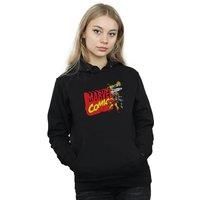 Material: 50% cotton, 50% polyester. Design: printed. 153gsm. Hood features: double layer, drawcord, grown on hood. Cuff: elasticated. Heavyweight. Neckline: hooded. Sleeve-type: long-sleeved. Pockets: 1 kangaroo pocket. Fastening: pull over. 100% officially licensed. | Marvel Comics Women's Vintage Logo Blast Hoodie in Black | Size: XL