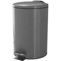 GoodHome Koros Grey Steel Round Bathroom Pedal Operated Lid Bin, 3L