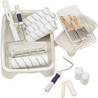 Big box decorating set ideal for interior painting projects. Brushes have solid round tapered filaments for a superb load capacity and excellent control. Medium pile microfibre mix roller sleeves provide excellent paint load and release with minimal lint loss. Roller sleeve selection provides coverage for all rough and smooth interior surfaces. Suitable for all interior paints. - Manufacturers part number: 142FM