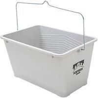 Deep paint scuttle with internal measuring scale. Ideal for use with 9 and 12" rollers. Raised ridges on scuttle help to load rollers and remove excess paint. Supplied with sturdy metal carry handle. Grey finish. - Manufacturers part number: 966FM