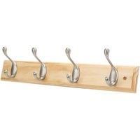 Satin nickel hooks mounted on a pine board that maximises wall space. Durable and easy to install. 4 x Satin Nickel Hooks on a Pine Rail Double-Ended Hook Design Heavy Duty Zinc Alloy Space Saving Easy to Install - Manufacturers part number: 200TE
