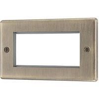 Plate aperture size 100mm wide x 50mm high, can accommodate four 25mm wide modules or two 50mm wide modules. Allows customisation of outlets when used with Euro Modules. Back box required (not included). Raised Rounded Profile Screwed Faceplate Fitted with Earth Terminal - Manufacturers part number: 709PN