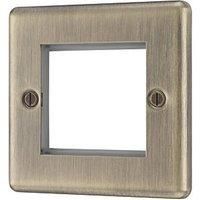 Plate aperture size 50mm wide x 50mm high, can accommodate two 25mm wide modules or one 50mm wide module. Allows customisation of outlets when used with Euro Modules. Back box required (not included). Raised Rounded Profile Screwed Faceplate Fitted with Earth Terminal - Manufacturers part number: 769PN