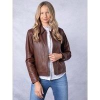 The Crosthwaite jacket from Lakeland Leather is all about understated style, combining a classic collared look with a fuss-free, pared-back design. Its boxy fit and soft-touch vegetable-tanned aniline leather give it a relaxed yet refined feel. Crafted with a vintage-effect finish, this jacket carries an authentic character that only deepens with wear - a true testament to its quality. With its simple centre zip fastening and handy slip pockets, the Crosthwaite is effortlessly versatile, ready to elevate any outfit with timeless appeal. | Lakeland Leather Women's 'Crosthwaite' Collared Leather Jacket in Chocolate | Size: 12 - Manufacturers part number: Lakeland Leather_5059357134376