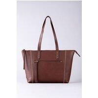 Understated and effortlessly refined, the Castlerigg Tote is the kind of bag that pulls every look together. Made from smooth, supple leather, it's finished with contrast cross-stitch detailing and subtle stud accents for a crafted, signature touch. A zipped top opens to a spacious main compartment with an interior zip and slip pocket to keep essentials organised, while the front zip and rear slip pockets offer easy access on the go. Comfortable over-the-shoulder straps and a clean, structured silhouette make it an everyday classic. | Lakeland Leather Women's 'Castlerigg' Leather Tote Bag in Tan