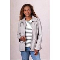 The Leithwaite jacket from Lakeland Leather balances enduring utility with clean, contemporary lines. Cut from beautiful semi-aniline leather, it's designed to soften and develop character as it ages. The silhouette is confidently feminine with its longer length and centre zip fastening, while subtle details finish the look. The funnel neck, drawstring collar and front slip pockets stay true to the original Levens style, but the drawcord waist has been tucked inside for an understated finish - offering the same cinched shape without any fuss. Silver-tone hardware adds a touch of polish, with a press-stud placket that nods to classic field jacket styling. Whether thrown over chunky knits or worn with easy layers, the Leithwaite moves effortlessly from city streets to countryside rambles. Timeless, functional, and beautifully made - this is leather outerwear at its finest. | Lakeland Leather Women's 'Leithwaite' Leather Field Jacket in Grey | Size: 14 - Manufacturers part number: Lakeland Leather_5059357147147
