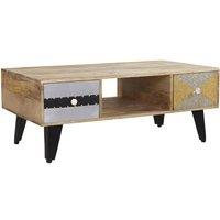 Hand crafted by skilled craftsmen in India this range offers a new dimension to furniture making from 100% Reclaimed Wood. The range is eco friendly, modern and versatile. The product comes fully assembled, just tightening of the legs required. Each drawer is made from a different material making every piece unique, finished with traditional handles and knobs. This rectangular coffee table features wood legs, one open shelf in the centre and two drawers on the sides. Features: Made From 100% Reclaimed W...