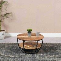 This coffee table is a handmade piece of furniture made from mango wood and metal, featuring a lacquered finish. It has a square shape with dimensions of 60x60x35 CM (LxDxH), and comes fully assembled. The table also includes a lower shelf for additional storage. The combination of the natural wood and metal elements in the design gives it a rustic and industrial look that will complement a variety of decor styles. Features: Hand-Carved Design & Premium Quality Material Mango Wooden & Metal Coffee Table...