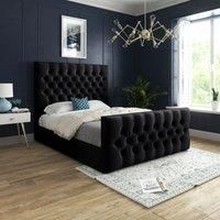 Classic and traditional design with this stunning chesterfield pleated upholstery headboard and matching upholstered footboard. Choice of buttons to choose from either fabric to match or diamant. The headboard is generously padded for comfort and bed is supplied with solid slats for long lasting mattress ventilation. The upholstered pleated footboard is complemented with chrome pipe feet. Bed features solid slats and is robust and strong. Casani beds are only suitable for a UK standard size mattress. Th...