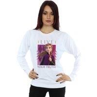 Material: 50% Cotton, 50% Polyester. Fabric: Single Jersey. Design: Printed. 153gsm. Fabric Technology: Heavyweight. Hem: Ribbed. Back Neck Tape. Neckline: Crew Neck, Ribbed. Sleeve-Type: Long-Sleeved. Cuff: Ribbed. Fastening: Pull Over. 100% Officially Licensed. | Disney Women's Frozen 2 Anna Live Your Truth Sweatshirt in White | Size: Large - Manufacturers part number: Disney_5059400390001