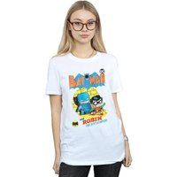 100% ringspun cotton. Fabric: midweight. Design: printed. Neckline: crew neck, lycra ribbed. Sleeve-type: short-sleeved. Branded neck label, single needle stitching, supersoft. 100% officially licensed. Fit: boyfriend. 153gsm. Packaging: swing tag. | Dc Comics Super Friends Batman The Boy Wonder Cotton Boyfriend T-Shirt In White - Manufacturers part numbers: BILDCF00002-WOM-BOYFT-WHT-XXXXXL|DC Comics_5059400406207