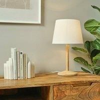 The Triston Light Wood Table Lamp with White Reni Shade is a modern and compact lamp that is perfect for any room in your home. The natural wood finish and mink reni shade make it a stylish addition to any decor, and the compact design makes it easy to move from one room to another. Whether you're looking for a new lamp for your living room or for your bed-side, the Triston Light Wood Table Lamp is a great option. Requires one 40W ES/E27 bulb or LED equivalent - Manufacturers part numbers: B3315|ValueLights_5059406033155