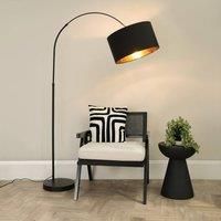 The Louis arch floor lamp in black is a modern take on a vintage classic. Perfect for reading lights, slotting beside or behind sofas so the light hangs overhead. Paired with a black and gold drum shade. | ValueLights Louis Black Arched Curved Floor Lamp with Black and Metallic Gold Inner Shade - Manufacturers part numbers: B4235|ValueLights_5059406042355